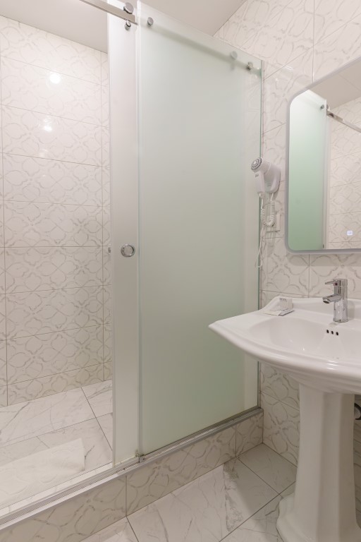 — Санузел: Душевая кабина, фен, косметический набор, тапочки.