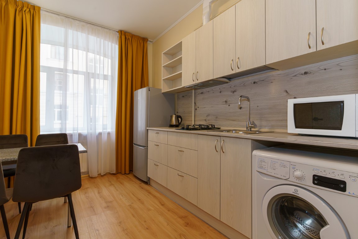Все квартиры расположены на втором этаже 5-этажного дома и имеют отдельный вход. Окна апартаментов выходят в тихий ухоженный дворик.